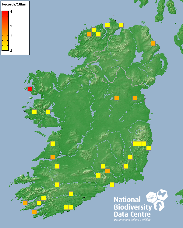 Distribution of the number of records recorded within each 10km grid square (ITM).Marine Map - 50km