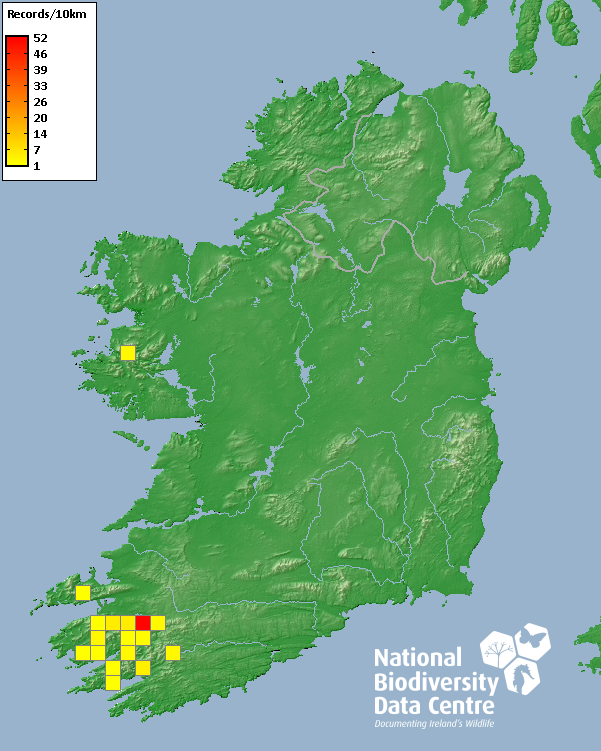 Distribution of the number of records recorded within each 10km grid square (ITM).Marine Map - 50km