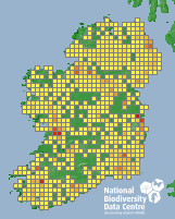 Distribution of the number of records recorded within each 10km grid square (ITM).Marine Map - 50km