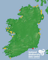 Distribution of the number of records recorded within each 10km grid square (ITM).Marine Map - 50km