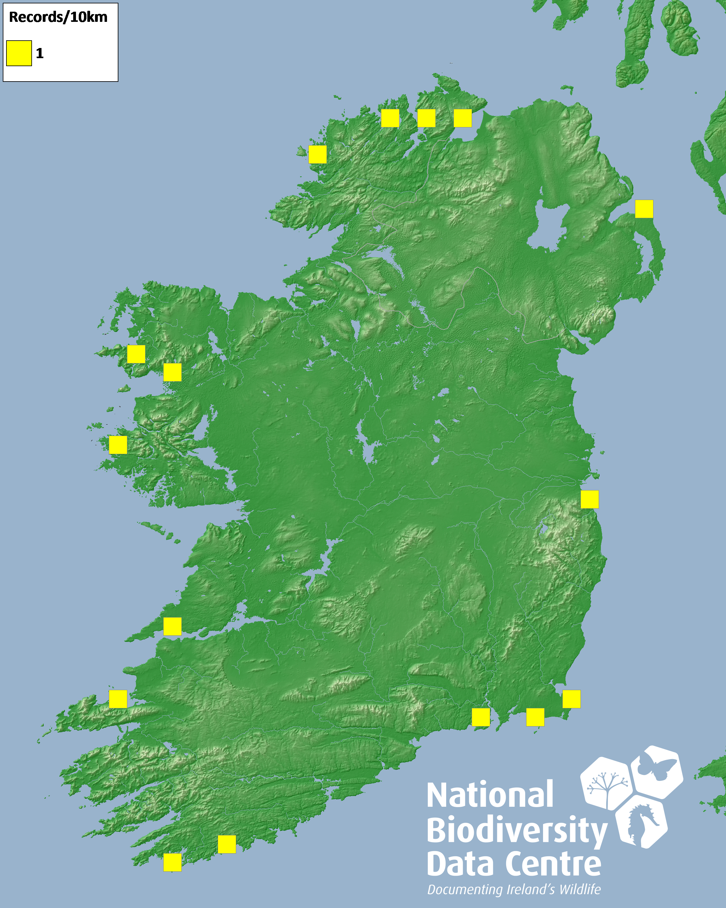 Distribution of the number of records recorded within each 10km grid square (ITM).Marine Map - 50km