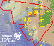 Distribution of the number of records recorded within each 10km grid square (ITM).Marine Map - 50km