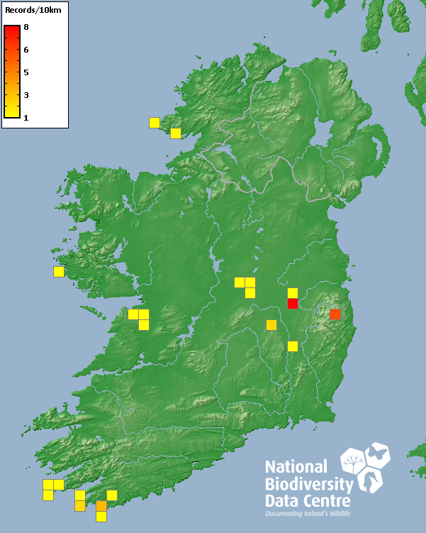 Distribution of the number of records recorded within each 10km grid square (ITM).Marine Map - 50km
