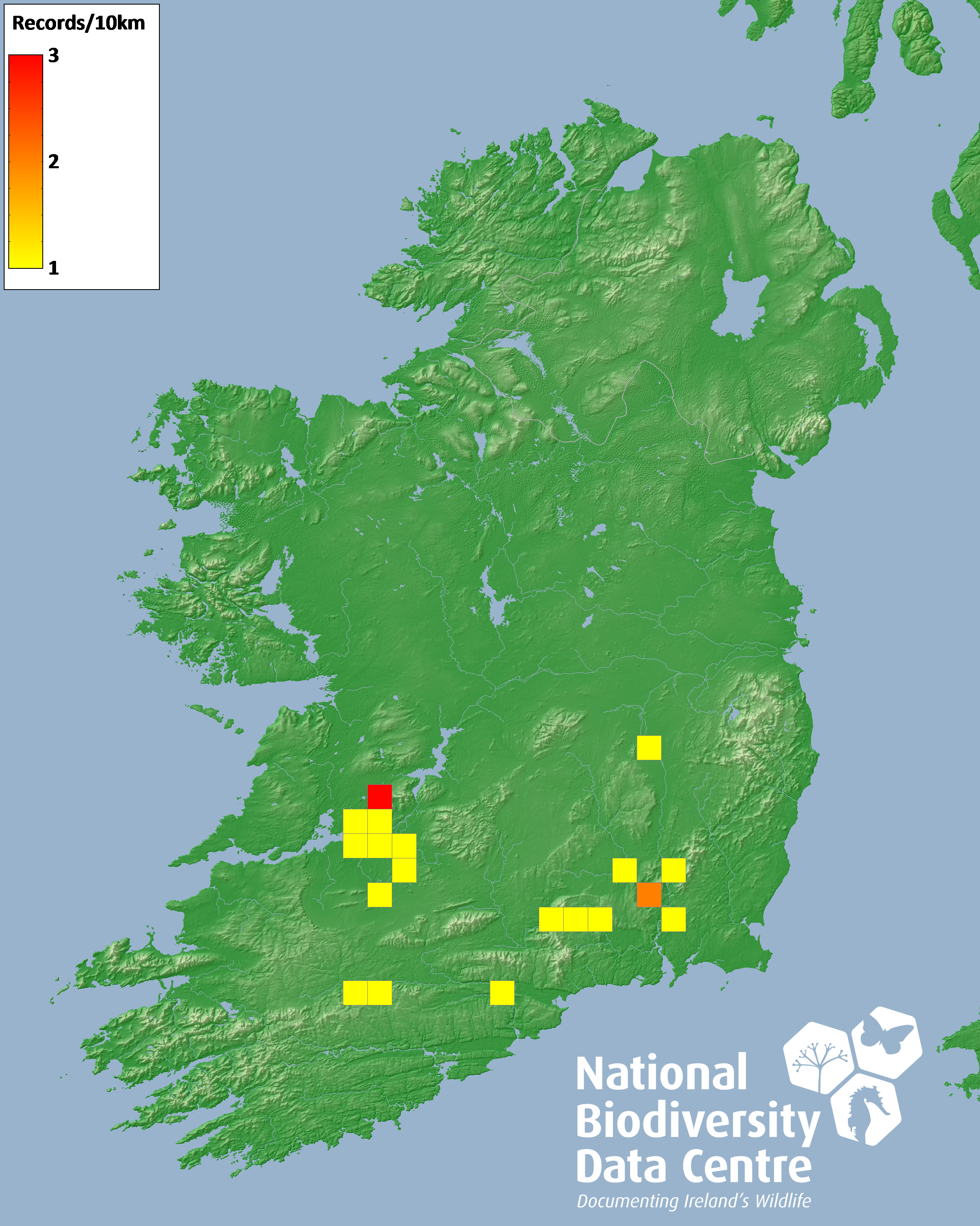 Distribution of the number of records recorded within each 10km grid square (ITM).Marine Map - 50km