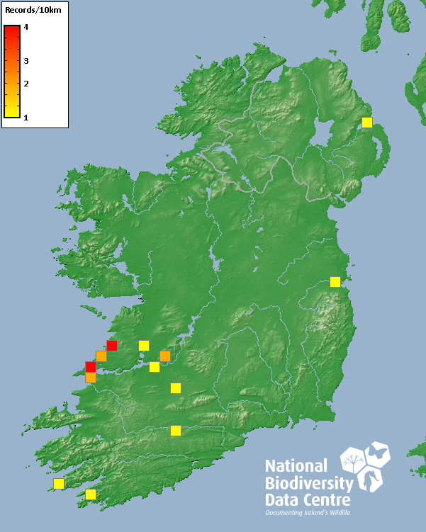 Distribution of the number of records recorded within each 10km grid square (ITM).Marine Map - 50km