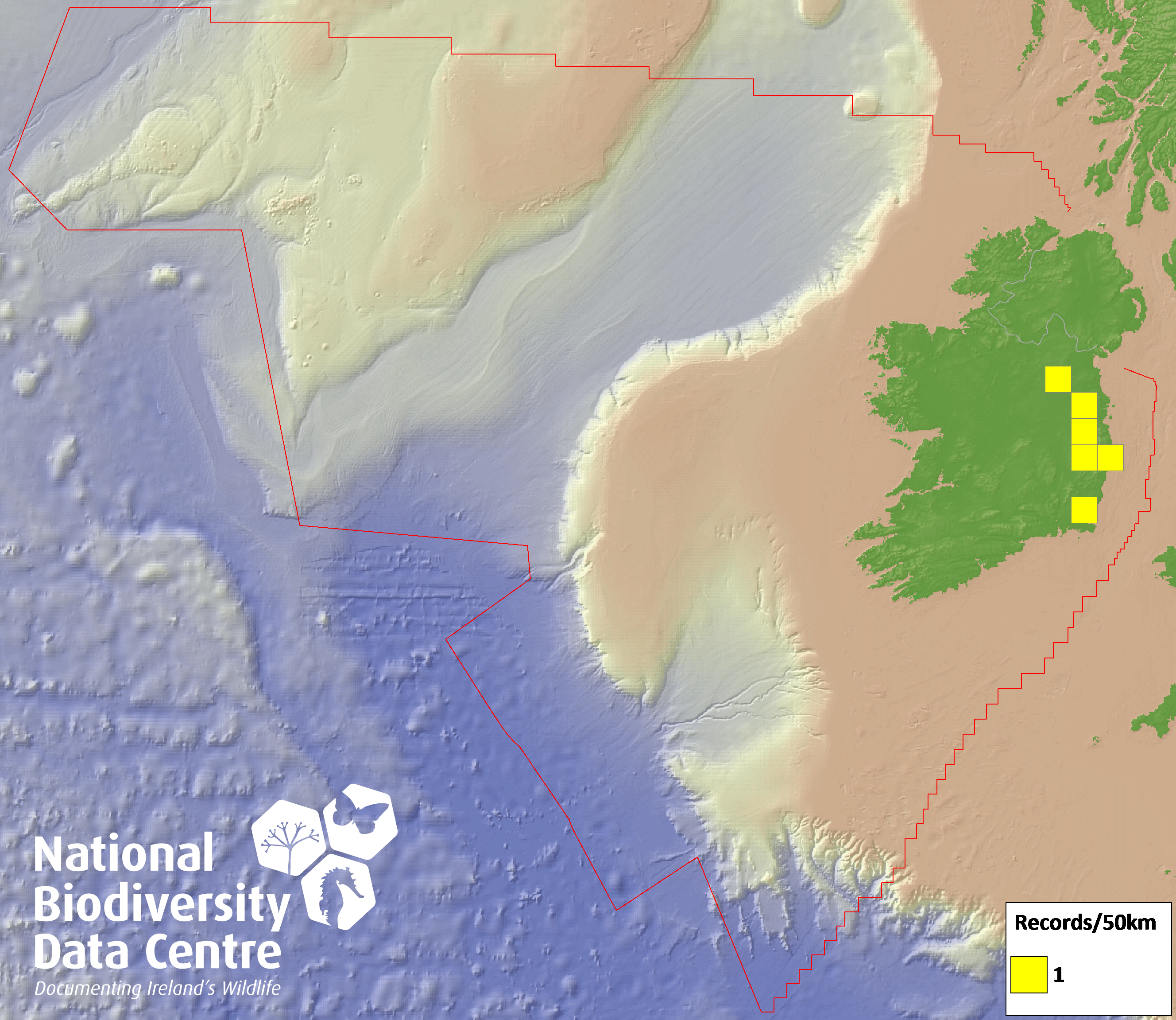 Distribution of the number of records recorded within each 10km grid square (ITM).Marine Map - 50km