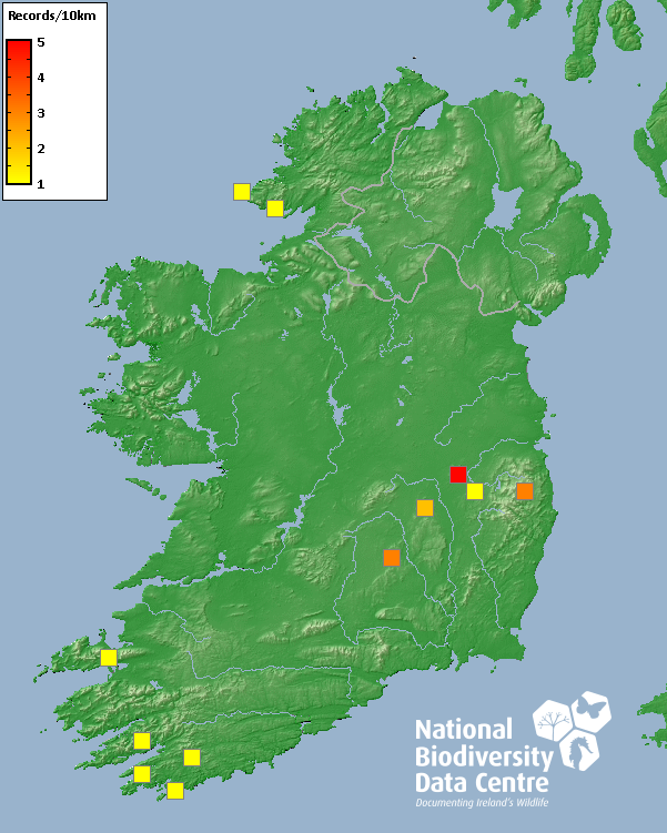 Distribution of the number of records recorded within each 10km grid square (ITM).Marine Map - 50km