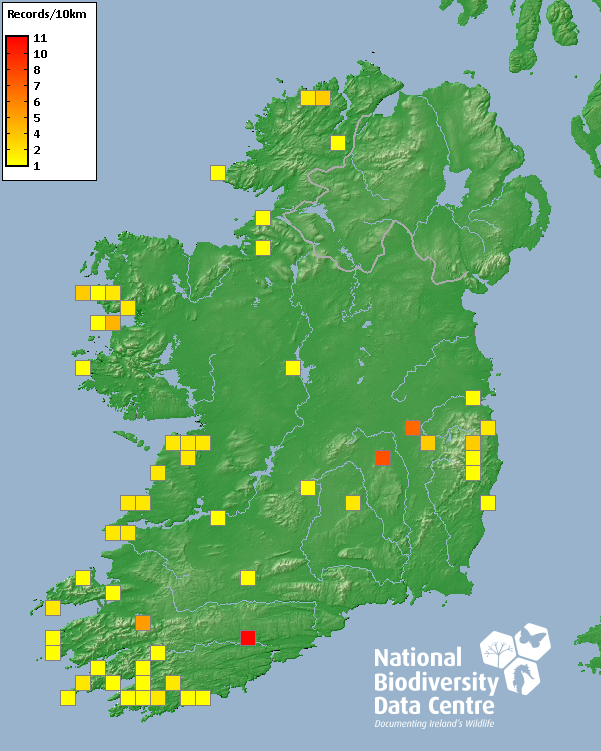 Distribution of the number of records recorded within each 10km grid square (ITM).Marine Map - 50km