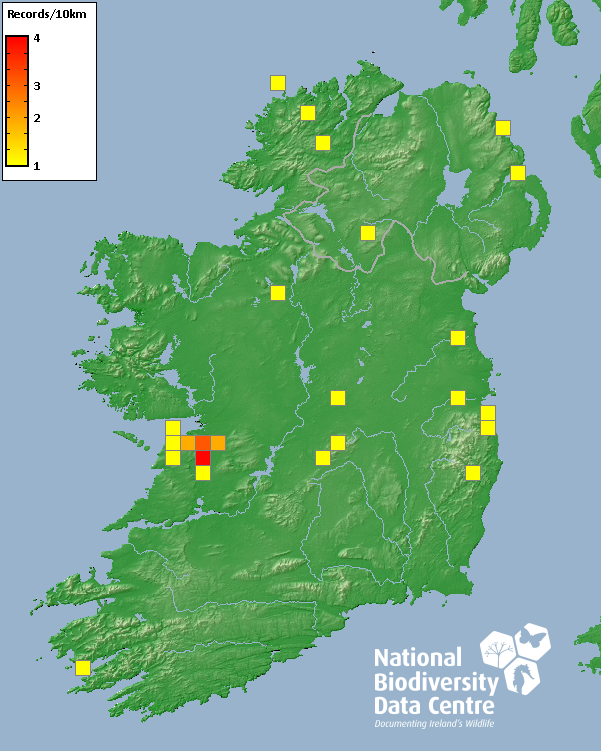 Distribution of the number of records recorded within each 10km grid square (ITM).Marine Map - 50km