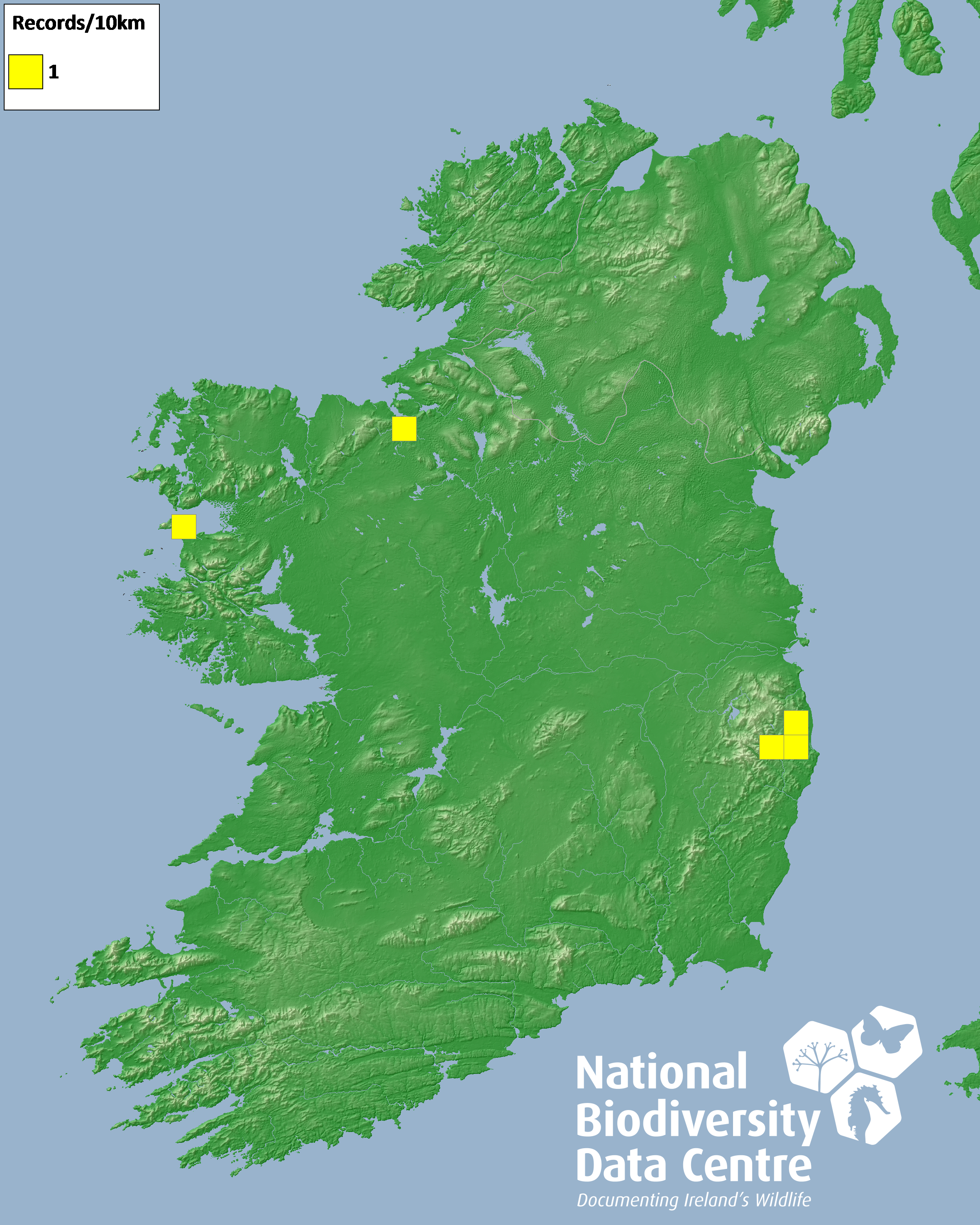 Distribution of the number of records recorded within each 10km grid square (ITM).Marine Map - 50km