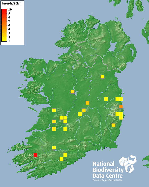 Distribution of the number of records recorded within each 10km grid square (ITM).Marine Map - 50km