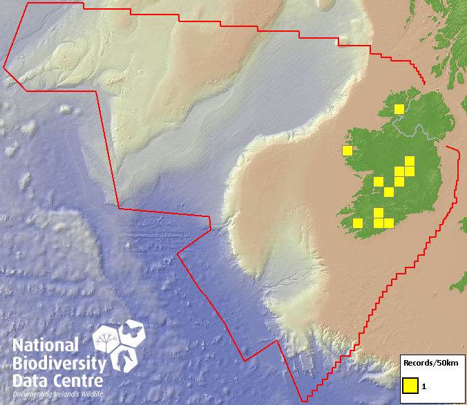 Distribution of the number of records recorded within each 10km grid square (ITM).Marine Map - 50km