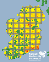 Distribution of the number of records recorded within each 10km grid square (ITM).Marine Map - 50km