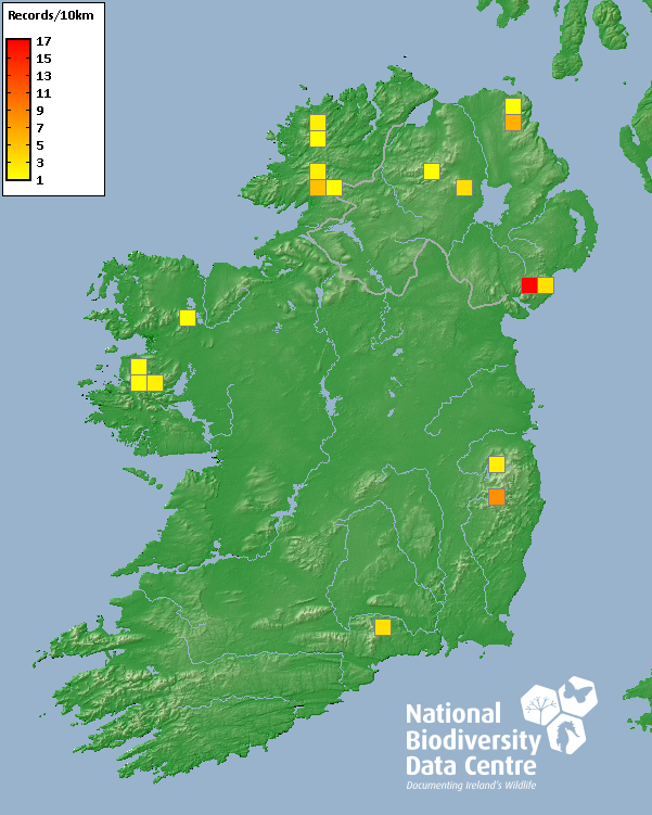 Distribution of the number of records recorded within each 10km grid square (ITM).Marine Map - 50km
