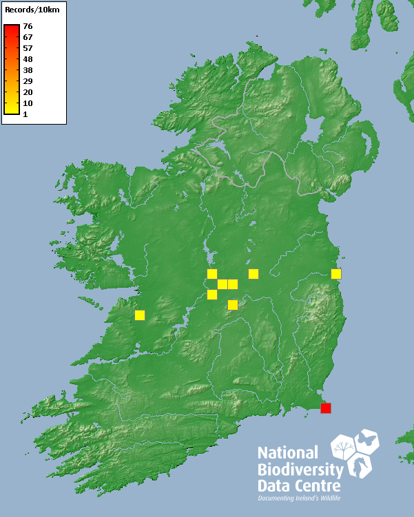 Distribution of the number of records recorded within each 10km grid square (ITM).Marine Map - 50km