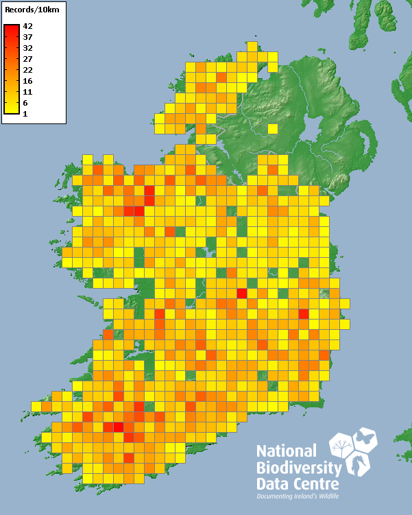 Distribution of the number of records recorded within each 10km grid square (ITM).Marine Map - 50km