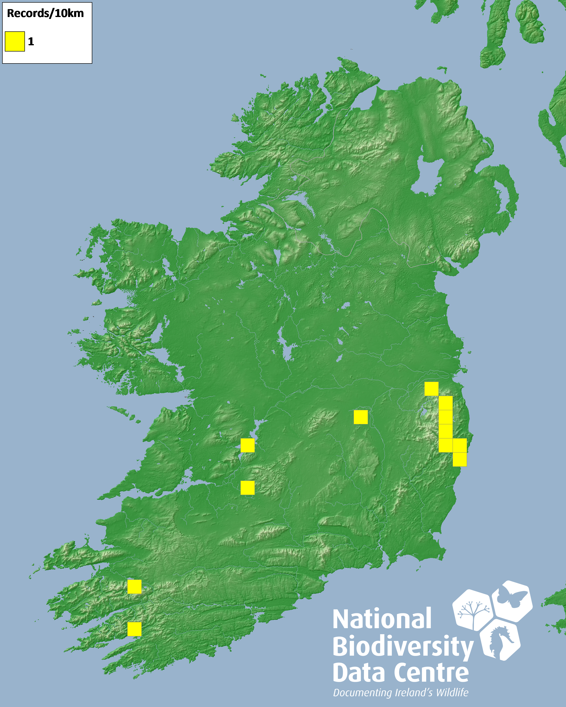 Distribution of the number of records recorded within each 10km grid square (ITM).Marine Map - 50km