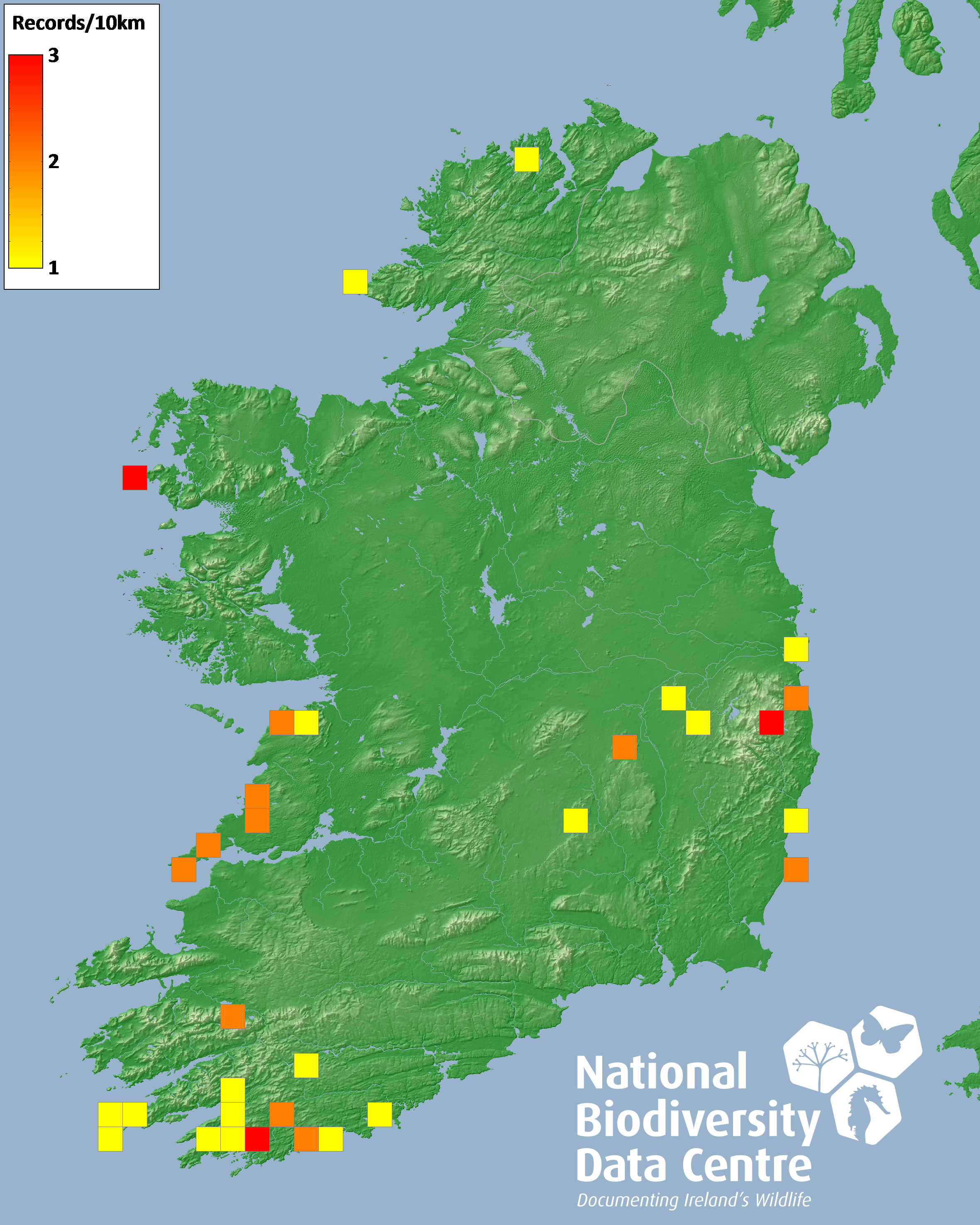 Distribution of the number of records recorded within each 10km grid square (ITM).Marine Map - 50km
