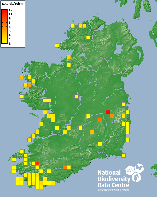 Distribution of the number of records recorded within each 10km grid square (ITM).Marine Map - 50km