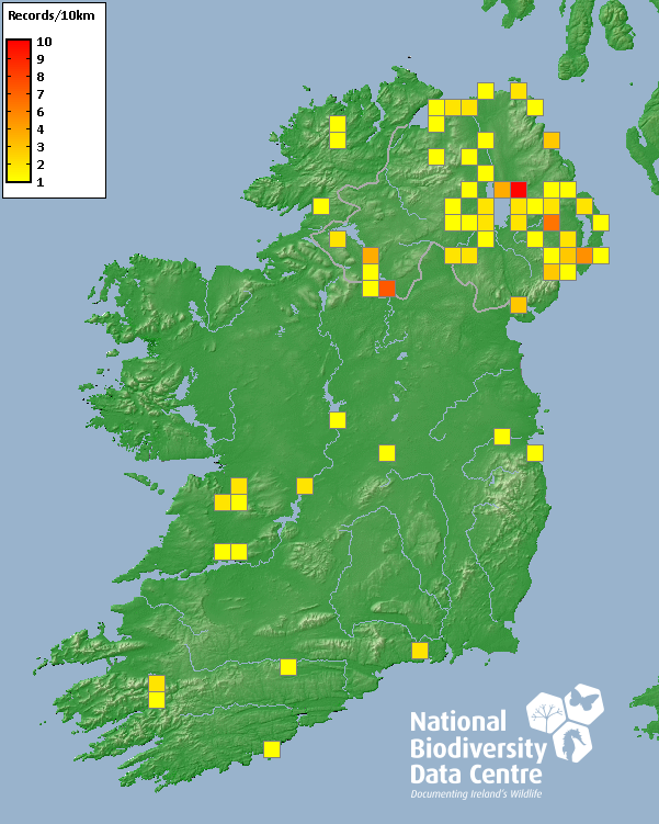 Distribution of the number of records recorded within each 10km grid square (ITM).Marine Map - 50km