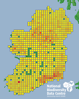 Distribution of the number of records recorded within each 10km grid square (ITM).Marine Map - 50km