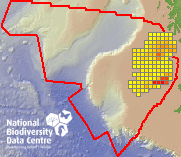 Distribution of the number of records recorded within each 10km grid square (ITM).Marine Map - 50km