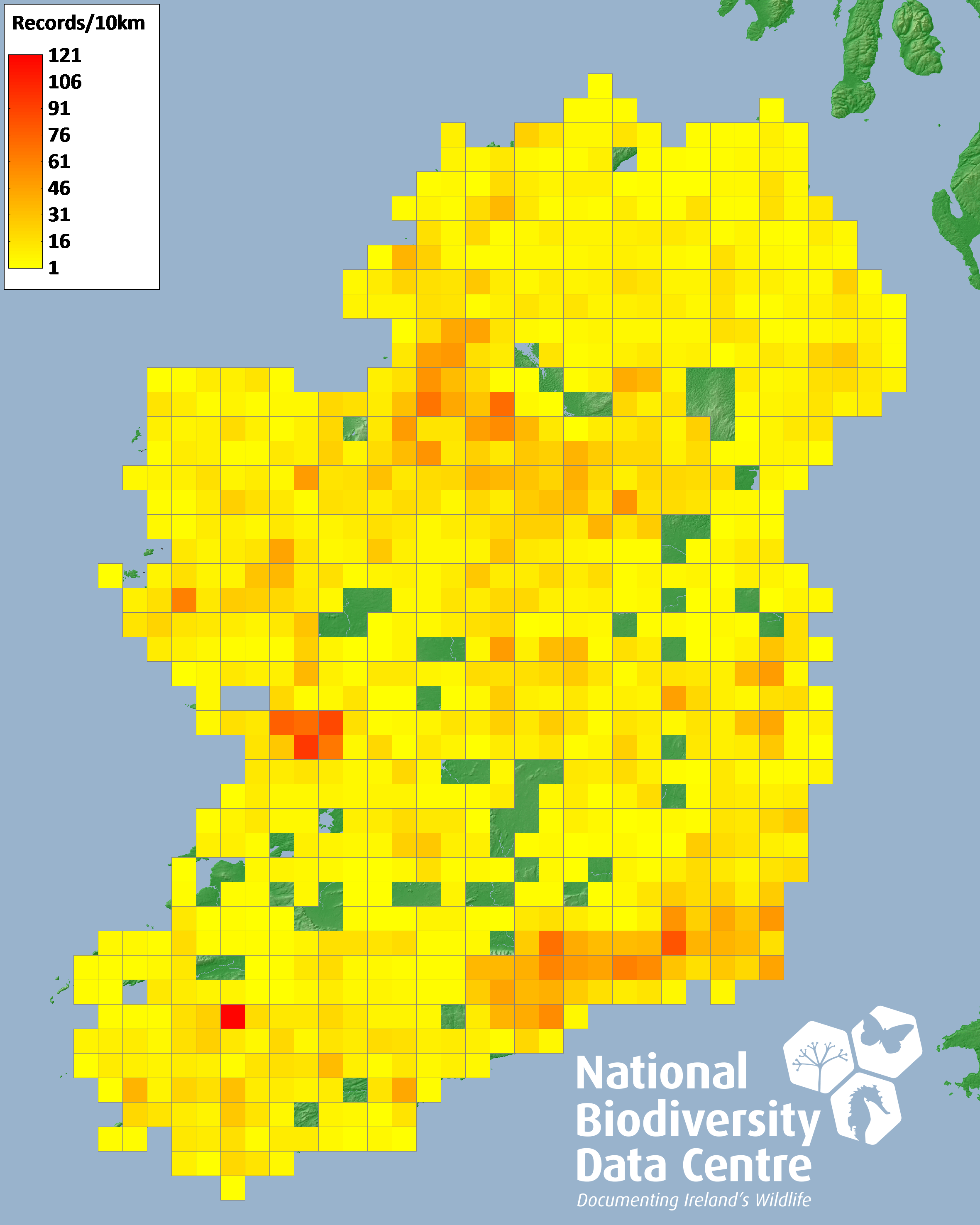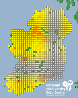 Distribution of the number of records recorded within each 10km grid square (ITM).Marine Map - 50km