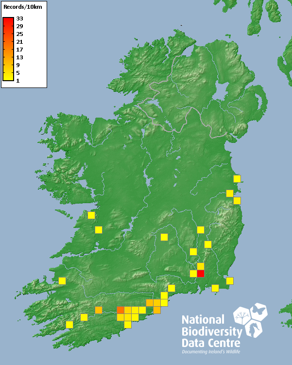 Distribution of the number of records recorded within each 10km grid square (ITM).Marine Map - 50km