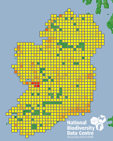 Distribution of the number of records recorded within each 10km grid square (ITM).Marine Map - 50km