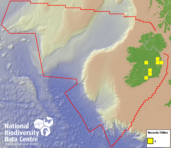 Distribution of the number of records recorded within each 10km grid square (ITM).Marine Map - 50km