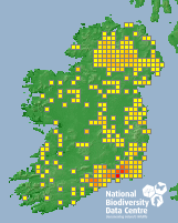 Distribution of the number of records recorded within each 10km grid square (ITM).Marine Map - 50km