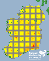 Distribution of the number of records recorded within each 10km grid square (ITM).Marine Map - 50km