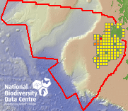 Distribution of the number of records recorded within each 10km grid square (ITM).Marine Map - 50km