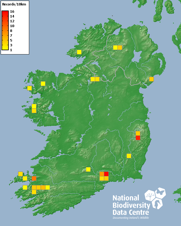 Distribution of the number of records recorded within each 10km grid square (ITM).Marine Map - 50km
