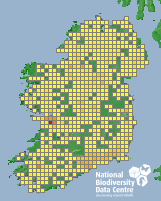 Distribution of the number of records recorded within each 10km grid square (ITM).Marine Map - 50km