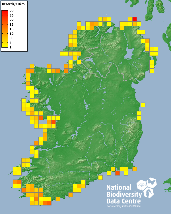 Distribution of the number of records recorded within each 10km grid square (ITM).Marine Map - 50km