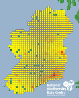 Distribution of the number of records recorded within each 10km grid square (ITM).Marine Map - 50km