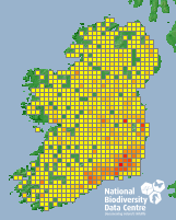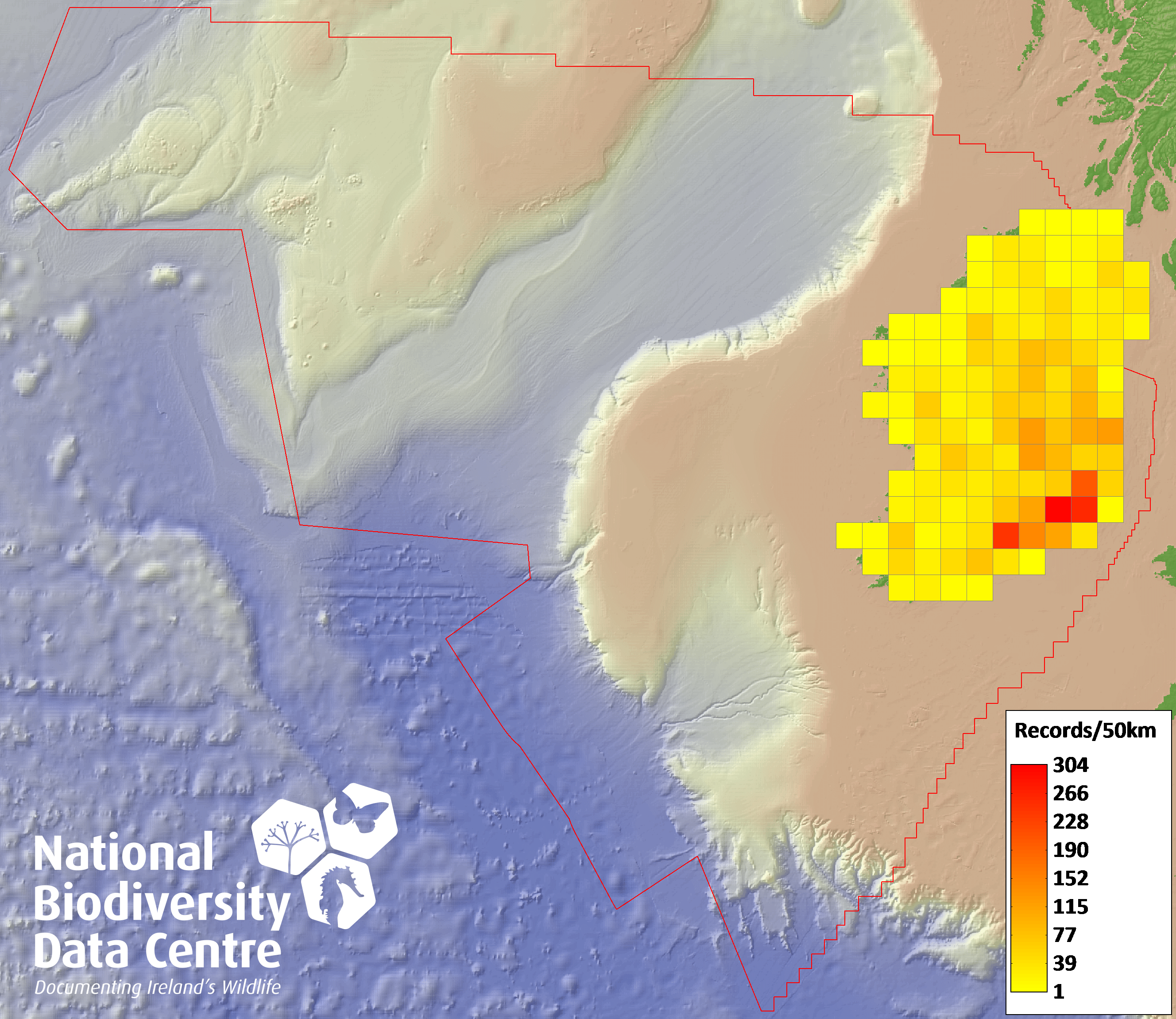 Distribution of the number of records recorded within each 10km grid square (ITM).Marine Map - 50km