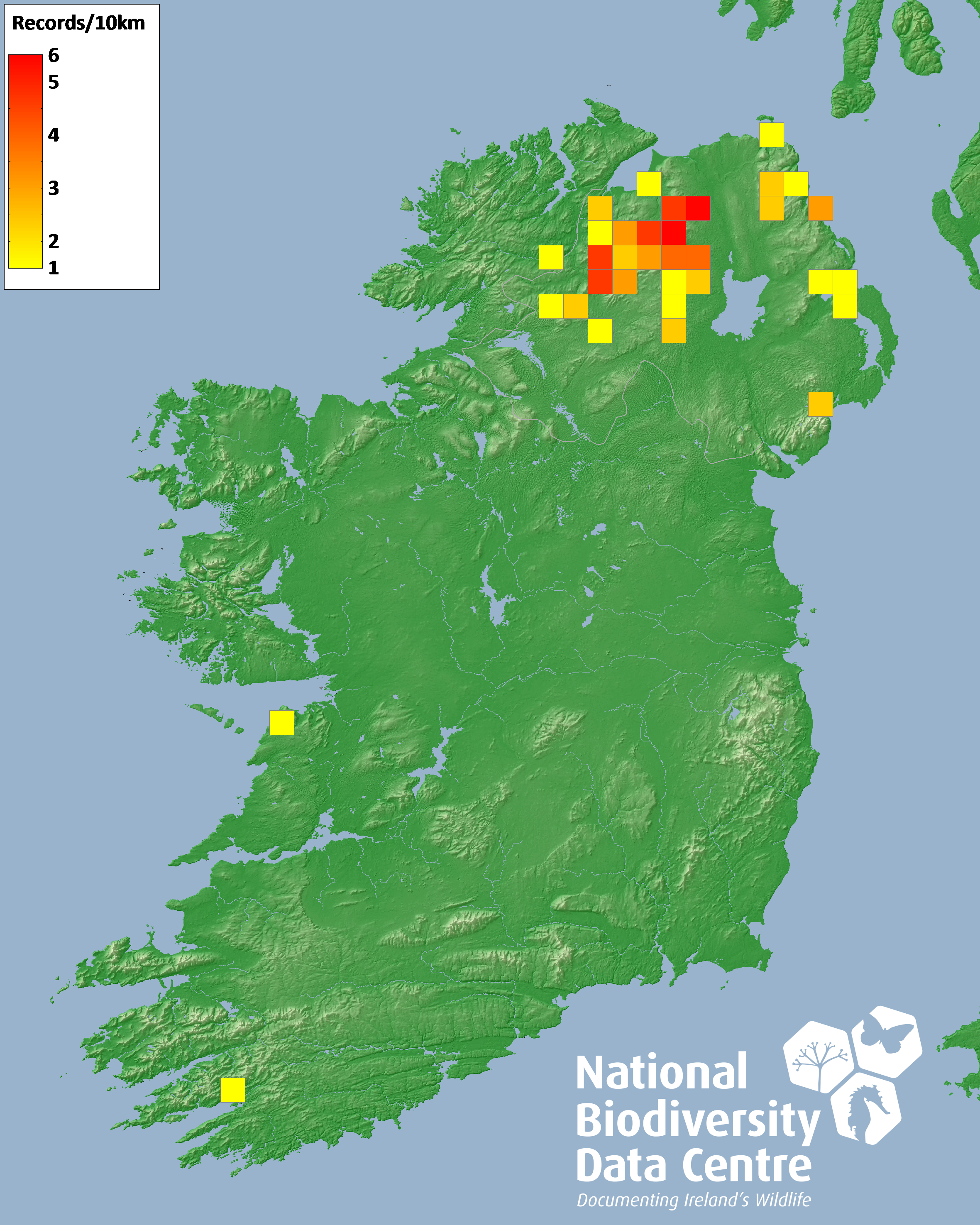 Distribution of the number of records recorded within each 10km grid square (ITM).Marine Map - 50km