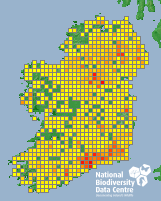 Distribution of the number of records recorded within each 10km grid square (ITM).Marine Map - 50km