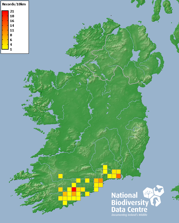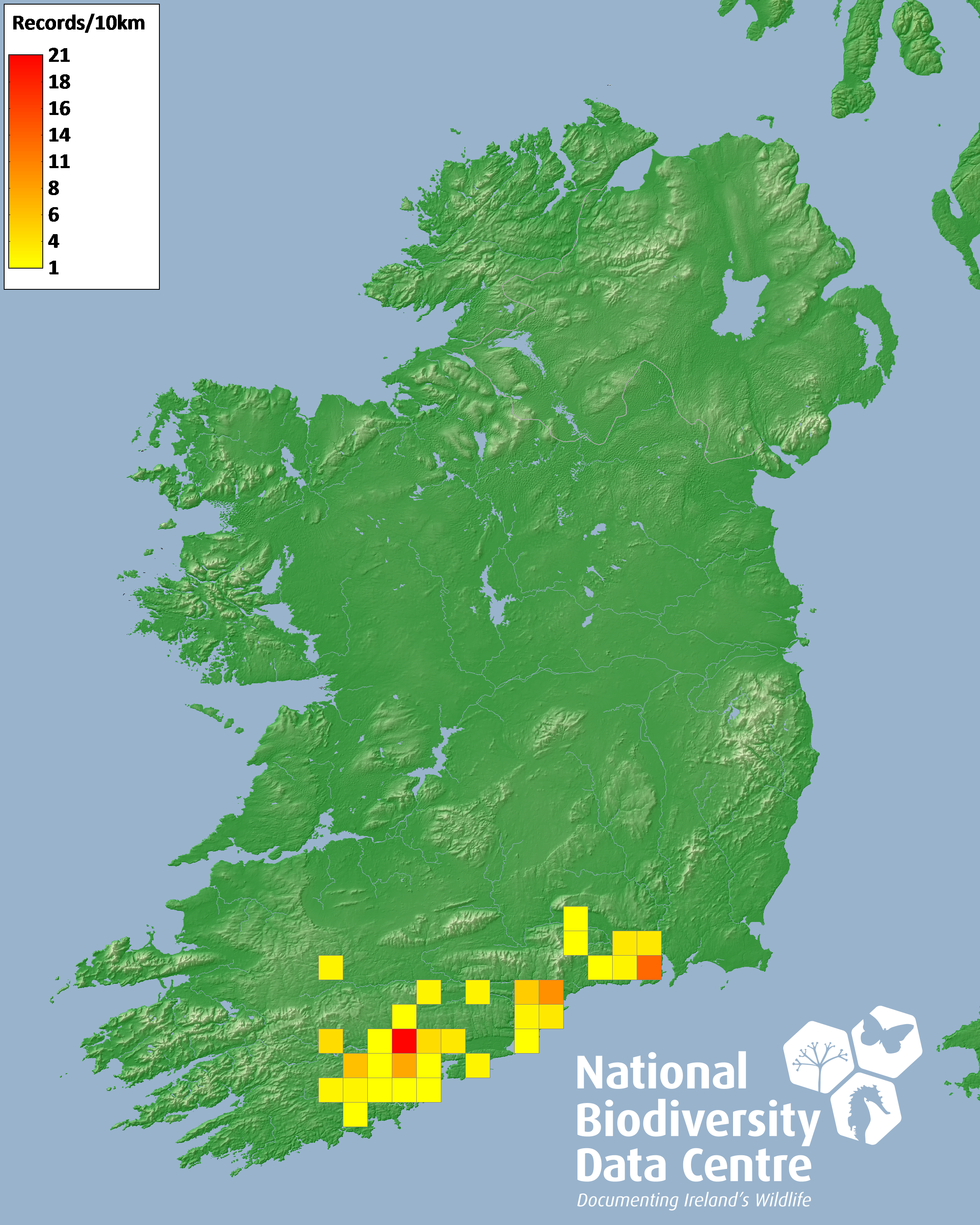Distribution of the number of records recorded within each 10km grid square (ITM).Marine Map - 50km
