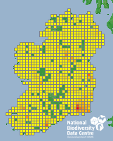 Distribution of the number of records recorded within each 10km grid square (ITM).Marine Map - 50km