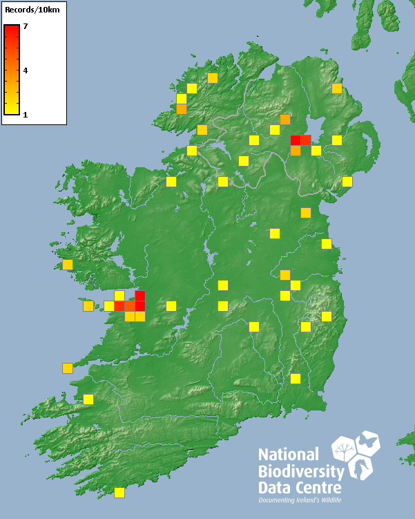 Distribution of the number of records recorded within each 10km grid square (ITM).Marine Map - 50km