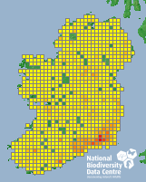 Distribution of the number of records recorded within each 10km grid square (ITM).Marine Map - 50km