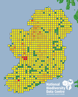 Distribution of the number of records recorded within each 10km grid square (ITM).Marine Map - 50km