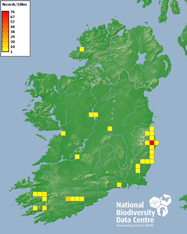 Distribution of the number of records recorded within each 10km grid square (ITM).Marine Map - 50km