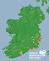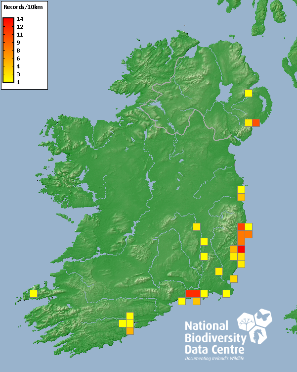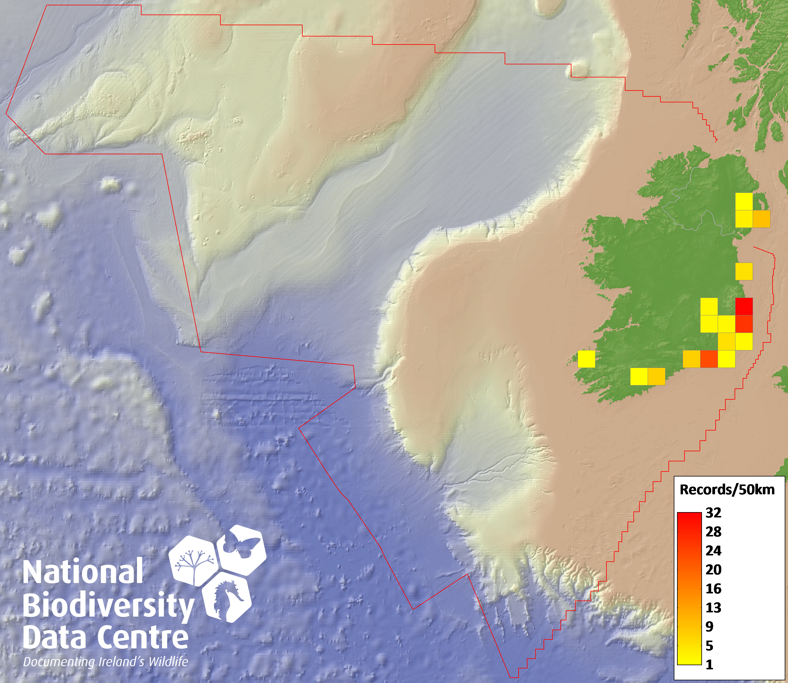 Distribution of the number of records recorded within each 10km grid square (ITM).Marine Map - 50km