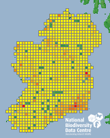 Distribution of the number of records recorded within each 10km grid square (ITM).Marine Map - 50km