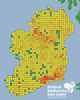 Distribution of the number of records recorded within each 10km grid square (ITM).Marine Map - 50km
