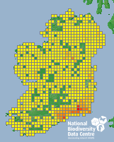 Distribution of the number of records recorded within each 10km grid square (ITM).Marine Map - 50km
